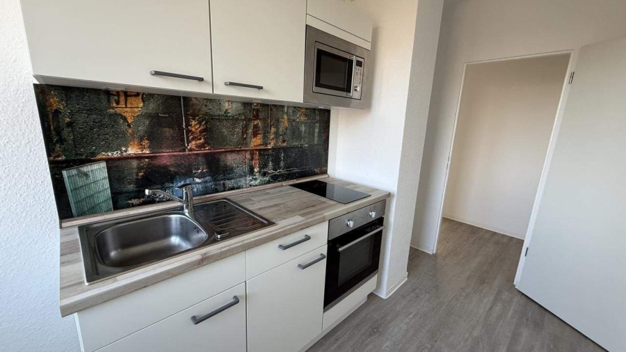 2-Raum Young-Living Wohnung, mit Küche, Küche und Bad mit Fenster, Mieterkeller, inklusive Hausreinigung, Balkon, E-Herdanschluss